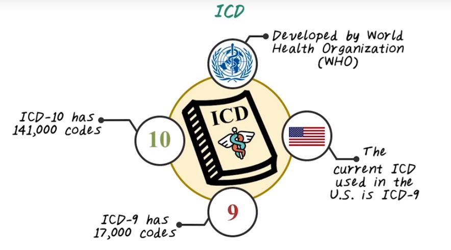 First let’s talk about ICD code for diagnosis. ICD stands for International Classification of Diseases which was developed by World Health Organization, and the focus of ICD codes is to categorize diseases.