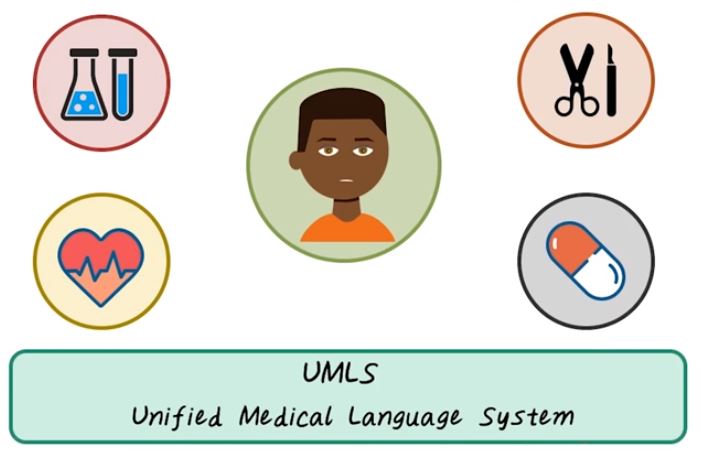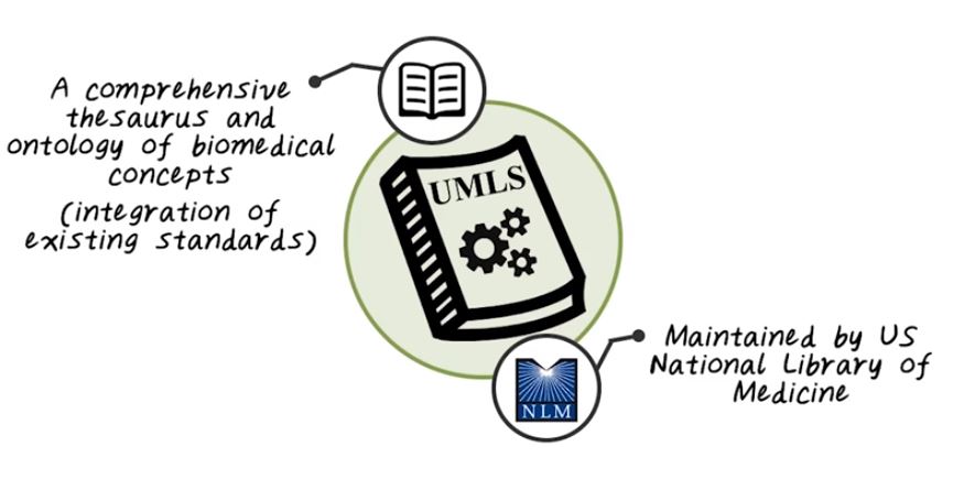 Next let’s talk about UMLS. UMLS stands for Unified Medical Language System. It is a set of software tools that maintained by National Library of Medicine in the US. It’s a comprehensive thesaurus and ontology of all biomedical concepts. It integrates all those existing data standards we just talked about. It also provides software tools to map data to those clinical concepts.